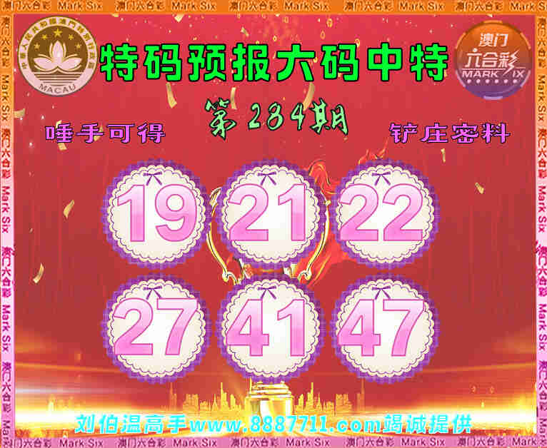 284期:【特码预报】 😜六码中特😜【19.21.22.27.41.47】开:41