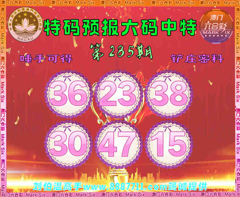 285期:【特码预报】 😜六码中特😜【36.23.38.30.47.15】开:24