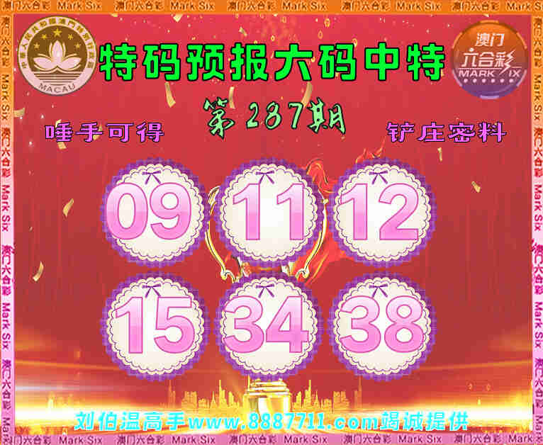 287期:【特码预报】 😜六码中特😜【09.11.12.15.34.38】开:34