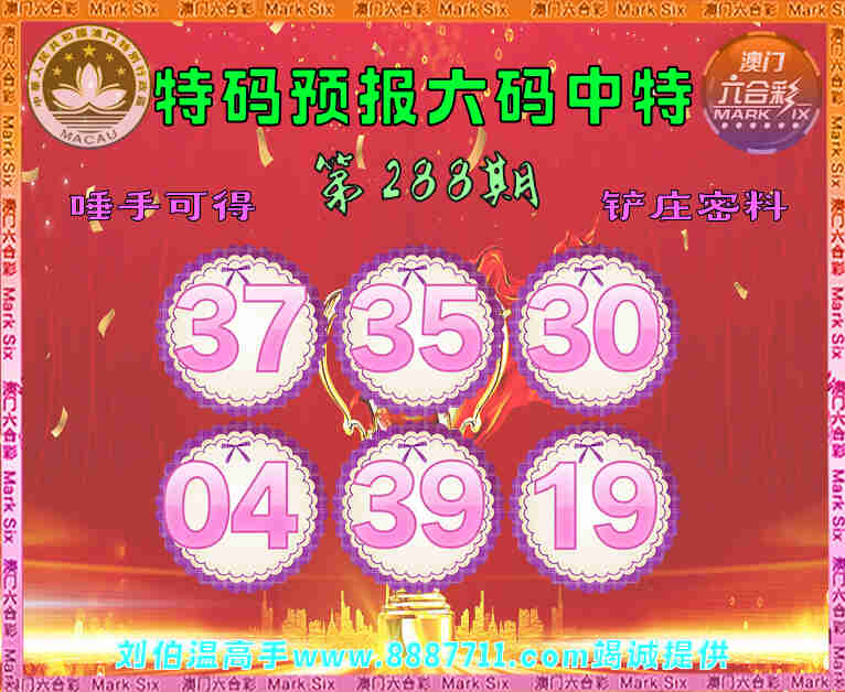 288期:【特码预报】 😜六码中特😜【37.35.30.04.39.19】开:14