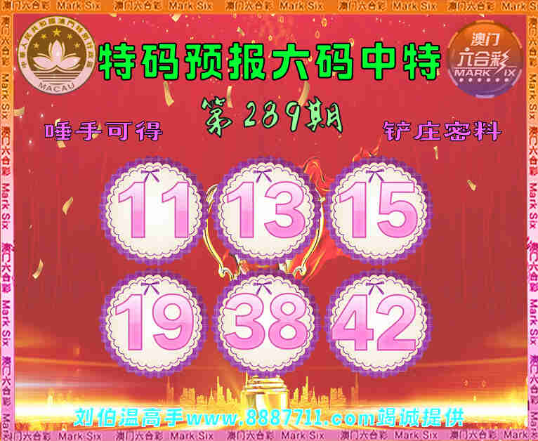 289期:【特码预报】 😜六码中特😜【11.13.15.19.38.42】开:42