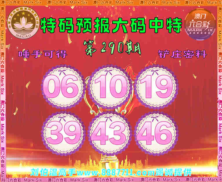 290期:【特码预报】 😜六码中特😜【06.10.19.39.43.46】开:19