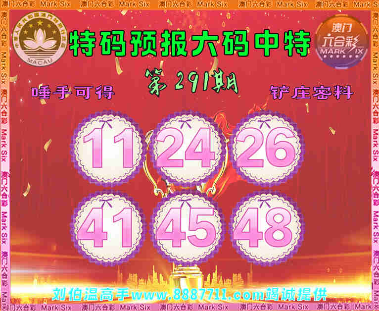 291期:【特码预报】 😜六码中特😜【11.24.26.41.45.48】开:44