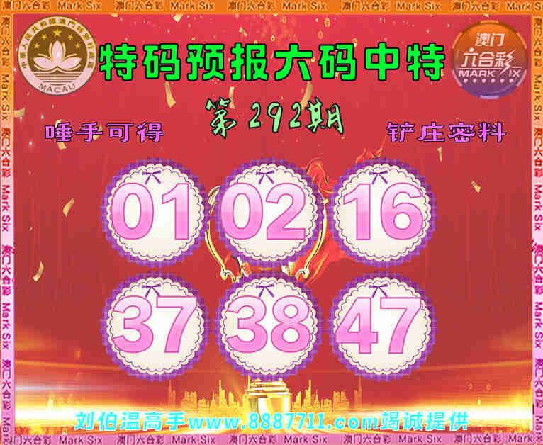 292期:【特码预报】 😜六码中特😜【01.02.16.37.38.47】开:02