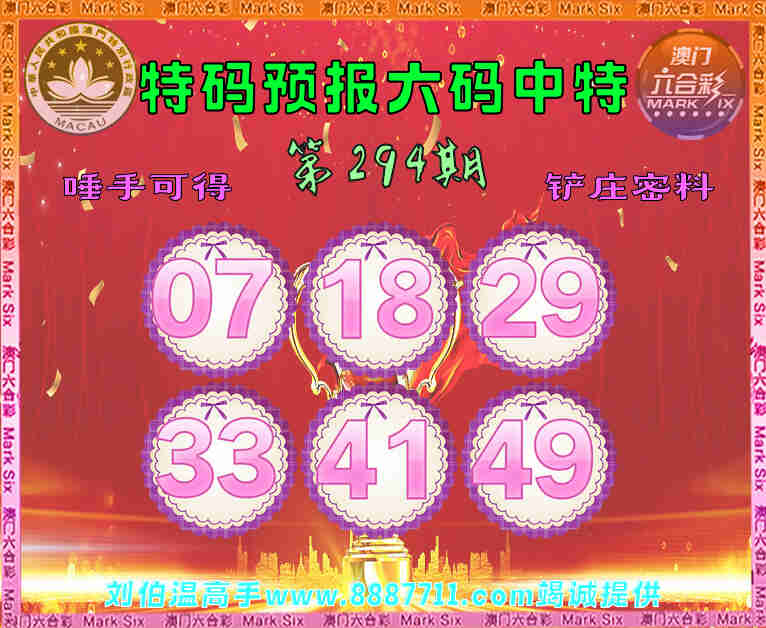 294期:【特码预报】 😜六码中特😜【07.18.29.33.41.49】开:18