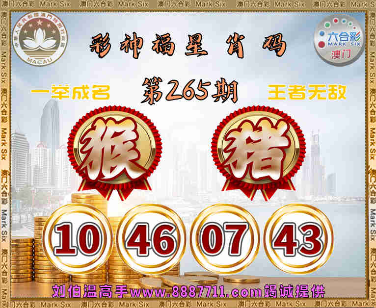 265期: 彩神福星 🍅②肖④码🍅【猪】【10.46.07.43】开:猴10