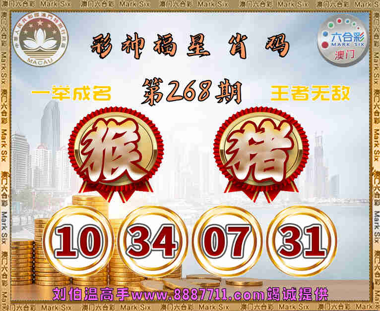 268期: 彩神福星 🍅②肖④码🍅【猪】【10.34.07.31】开:猴10