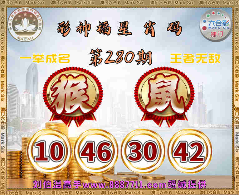 280期: 彩神福星 🍅②肖④码🍅【猴】【10.46.30.42】开:鼠42