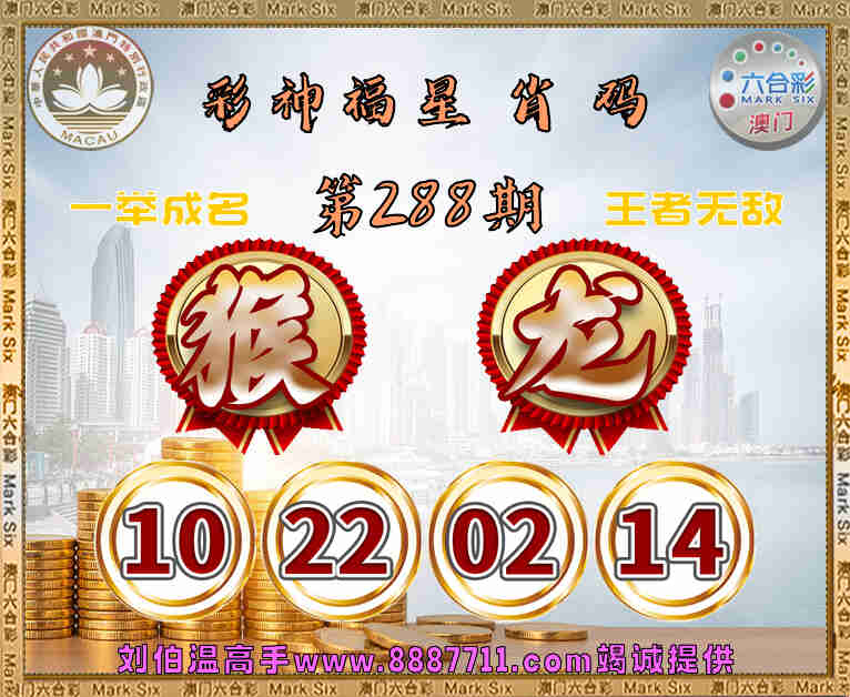 288期: 彩神福星 🍅②肖④码🍅【猴】【10.22.02.14】开:龙14